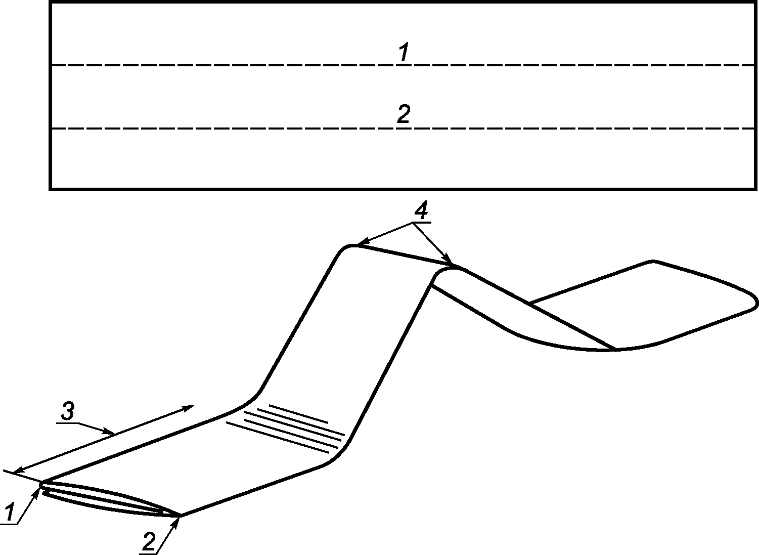 1 - линия складывания (сгиба) 1; 2 - линия складывания