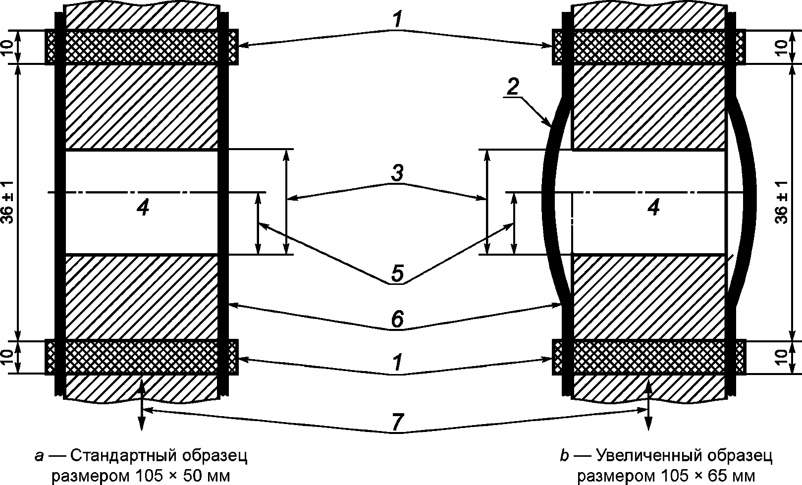 2 Можно увеличить размер образца при соответствующем увеличении ширины зажимов для проведения последующих гидростатических испытаний.