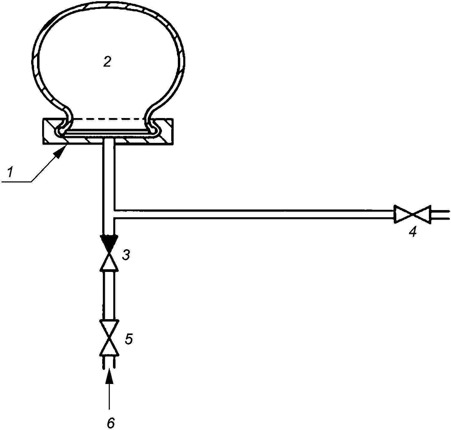 5 - клапан; 6 - источник подачи воздуха под давлением