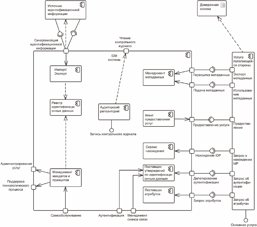 В данном разделе описываются элементы архитектуры системы управления идентификационными данными и их взаимосвязи.