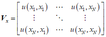 Примечание 1 - Ковариационная матрица измерений Vx размерности N x N, связанная с оценкой x векторной величины X, имеет вид