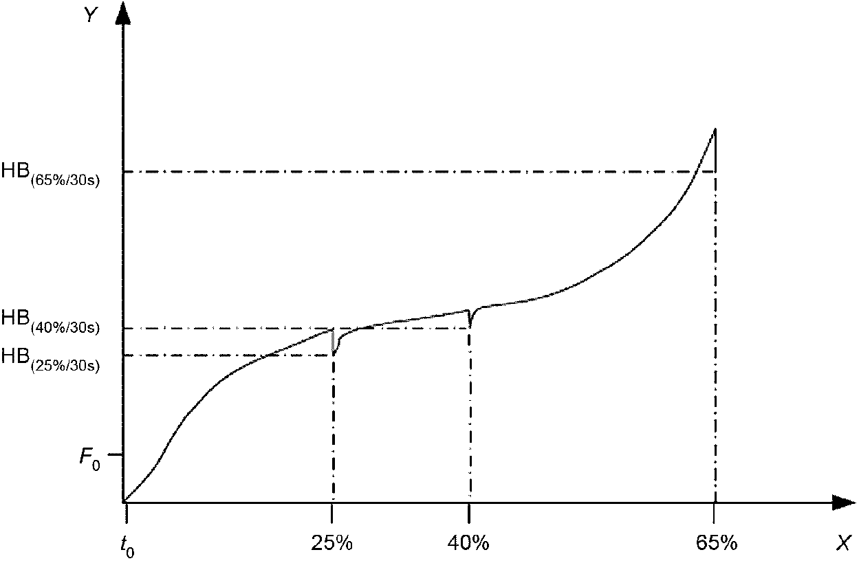 3.1 твердость при вдавливании H: Общая сила, необходимая для получения при установленных условиях испытания заданной величины деформации при вдавливании образца для испытания.