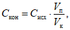 Vi - начальное значение объема газа по газовому расходомеру, дм3;