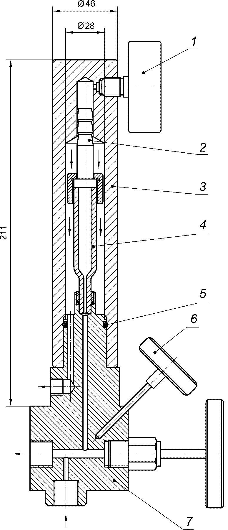1 - газовая линия (байпас); 2 - вентиль тонкой регулировки;