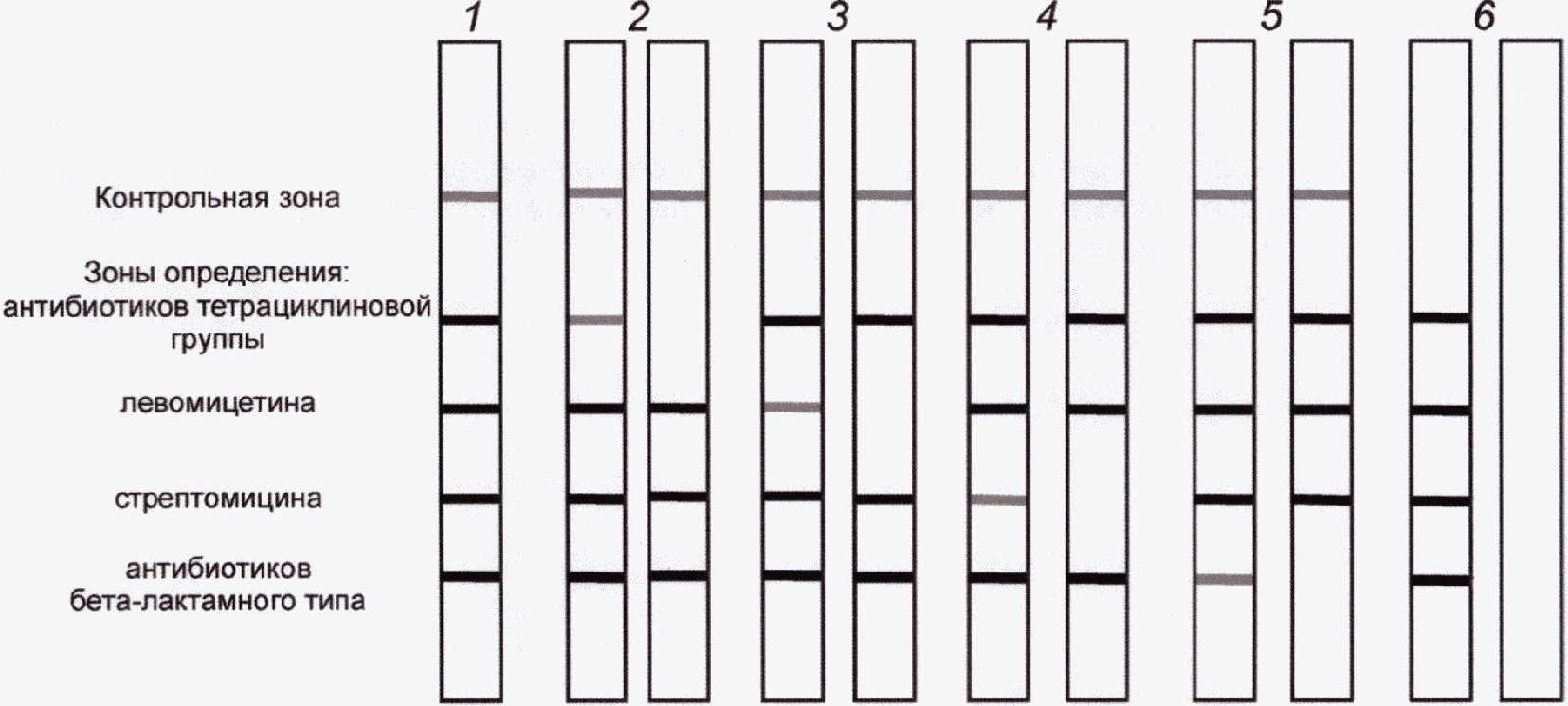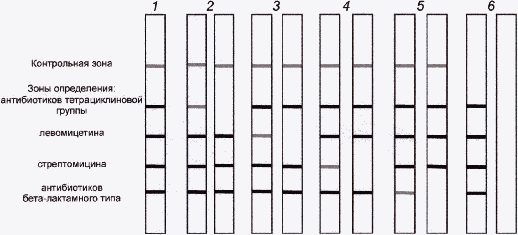 А.5.1 Примеры результатов определения наличия антибиотиков с использованием