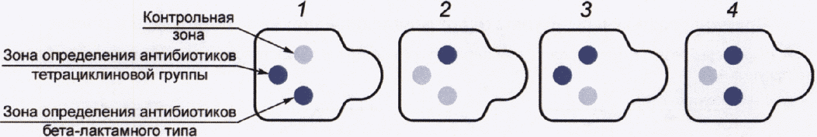 1 - антибиотики отсутствуют; 2, 3, 4 - антибиотики