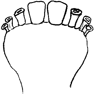 7.3.4 Зубная аркада молодняка крупного рогатого скота в возрасте до двух лет характеризуется наличием только первой пары постоянных резцов и оставшихся трех пар молочных резцов в соответствии с рисунком 5.