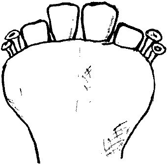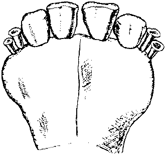 7.3.3 Зубная аркада телят от 3 до 8 мес характеризуется наличием молочных резцов, на стертой поверхности зацепов появляется коричневое пятно в соответствии с рисунком 4.