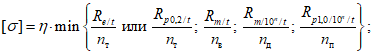 Re/t | - | минимальный предел текучести при расчетной температуре, МПа; |