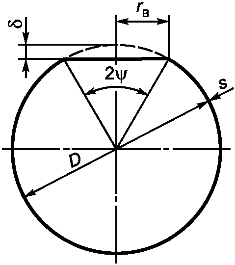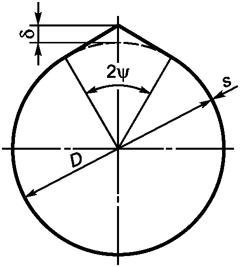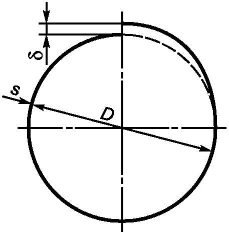 рисунок А.4 (приложение А)] понимается отклонение оболочки от правильной формы, распределенное на часть окружности и обусловленное уводом кромок сварного шва или вмятиной.