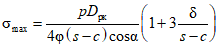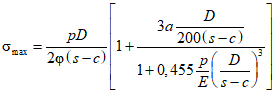 Допускаемое давление [p]п из условия прочности вычисляют по формуле