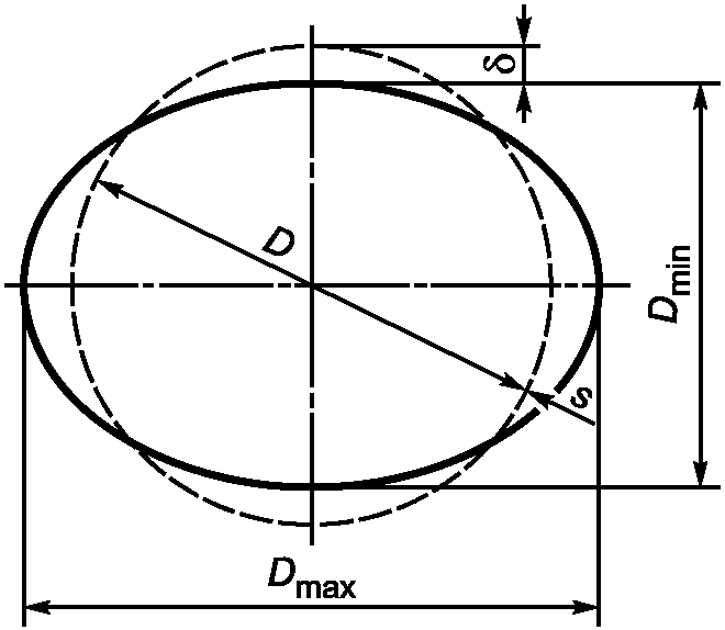 рисунок А.3 (приложение А)]. Значение некруглости (овальности) вычисляют по формуле