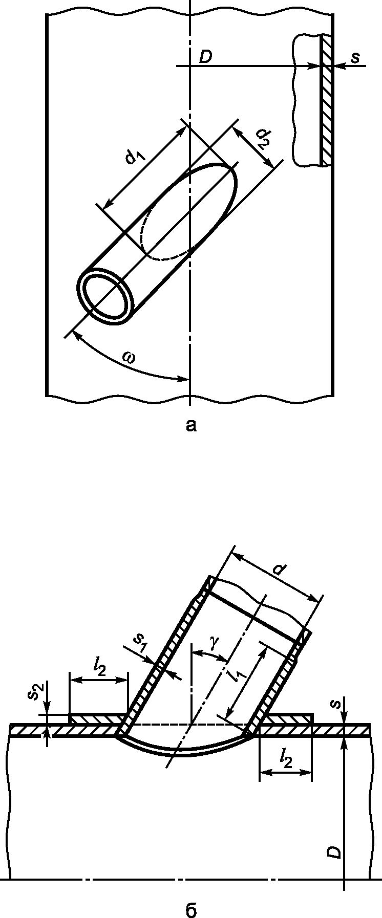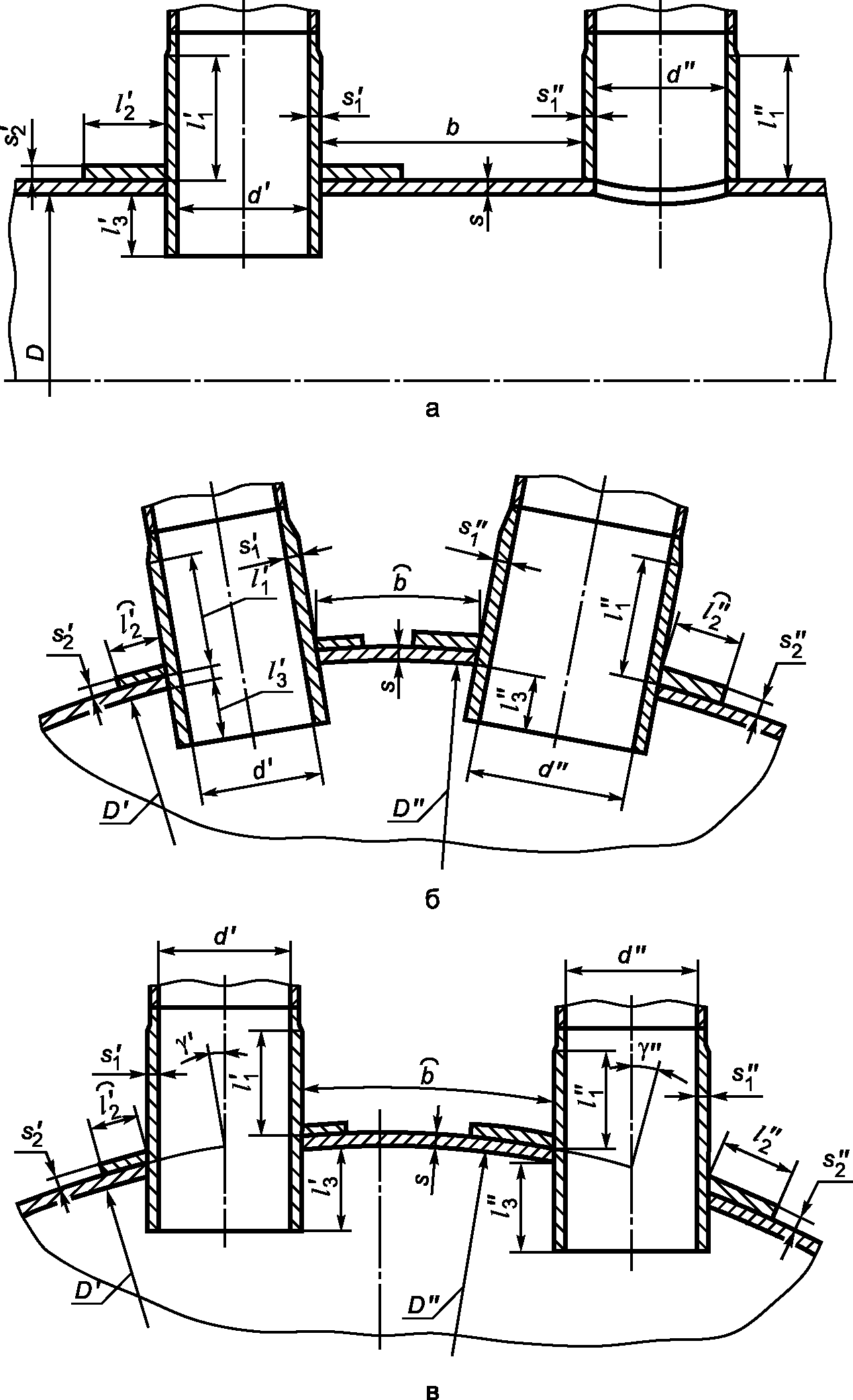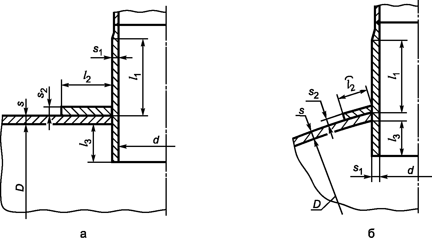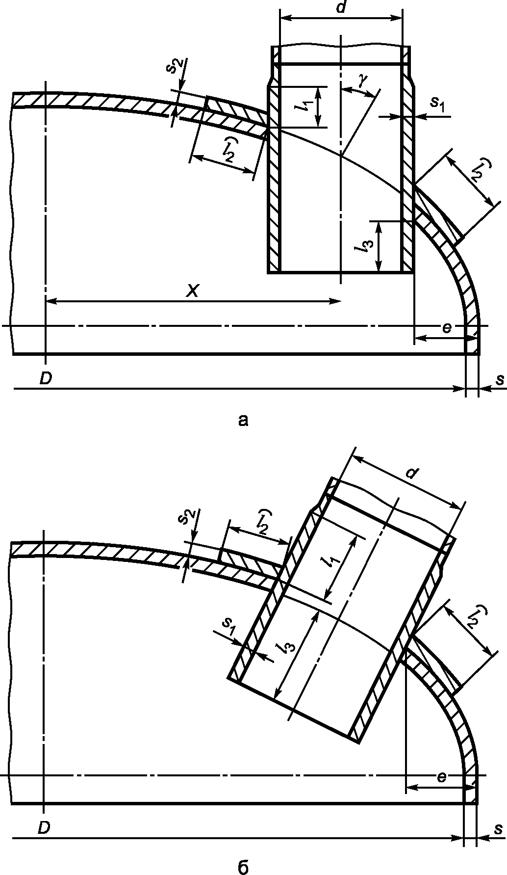 Рисунок А.11 - Наклонные штуцеры на обечайке