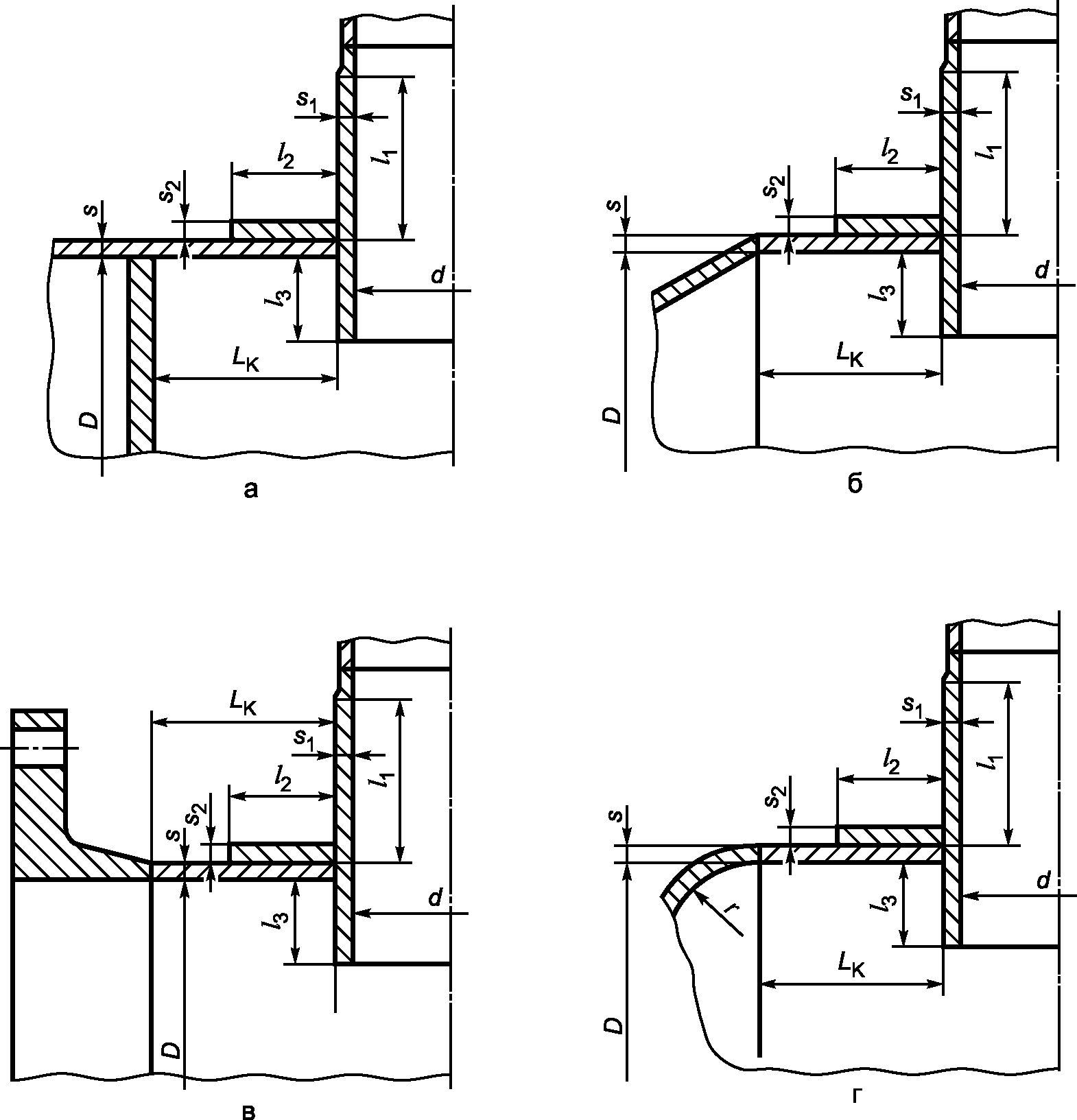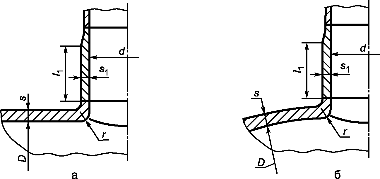 Для пластичных в условиях эксплуатации материалов условия прочности выполняются, если в месте пересечения выпуклого днища со штуцером
