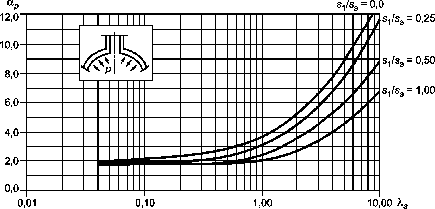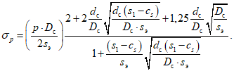 6.2.6.2 Максимальное расчетное напряжение в месте пересечения выпуклого днища со штуцером от внутреннего давления вычисляют по формуле