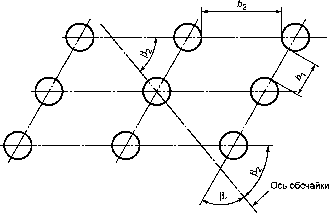 b | - | минимальное расстояние между наружными поверхностями двух соседних штуцеров, измеряемое по поверхности укрепляемого элемента (см. рисунки А.8 и А.9 приложения А), мм; |