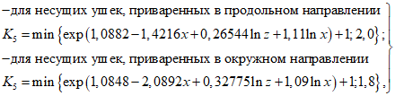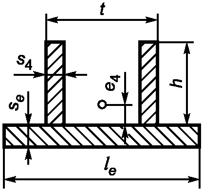 - из условия упругой устойчивости ребер (части ребра) опоры с двумя вертикальными швам (между двумя другими ребрами)
