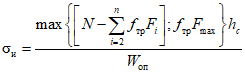 Расчетное напряжение изгиба в опоре (1-я опора считается неподвижной):