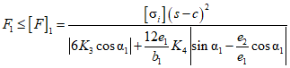 Если вертикальное усилие, действующее на опорную лапу, F1 < 0, анкерные болты следует проверить на совместные действия растяжения и сдвига по формуле