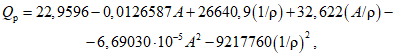 Выполняют линейную интерполяцию между горизонтальными строками, захватывающими в вилку значение плотности, и между графами, захватывающими в вилку значение анилиновой точки образца. Для получения значения Qp проводят линейную интерполяцию значений анилиновой точки в строке для вычисленных значений плотности.