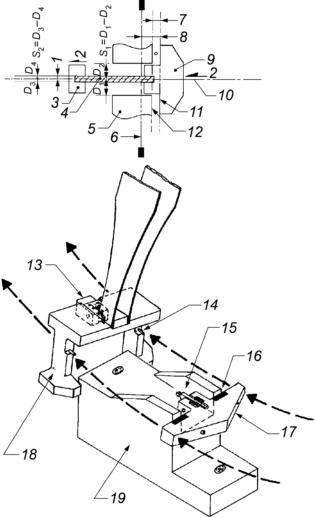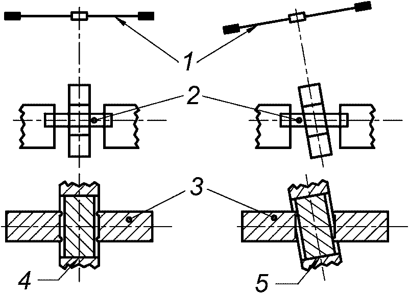 1 - ось качания маятника; 2 - образец; 3 - шаблон;