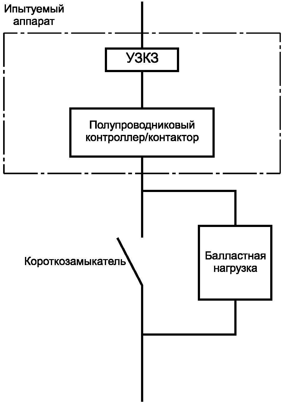 Стандартные схемы для испытаний на короткое замыкание проиллюстрированы в IEC 60947-1, изменение 1 (2010) (рисунки 9 - 12).