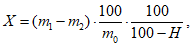 H - фактическое содержание влаги в пробе, выраженное в виде массовой доли, определяемое в соответствии с ISO 939, %.