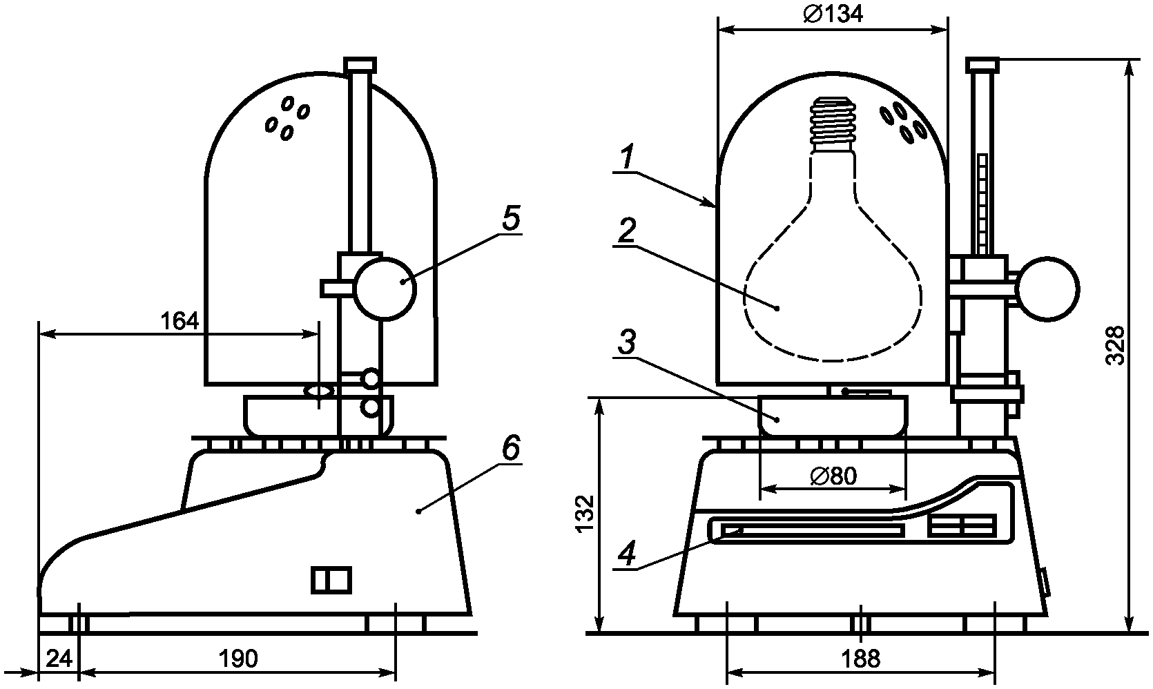 (диаметр 100 мм, высота 137 мм); 3 - чашка для пробы;