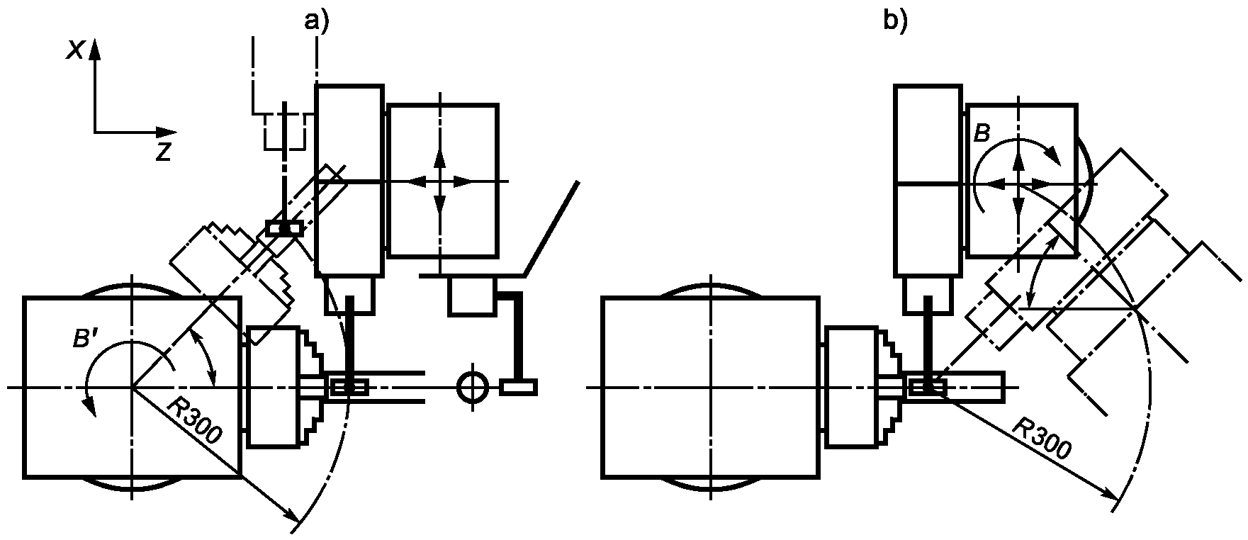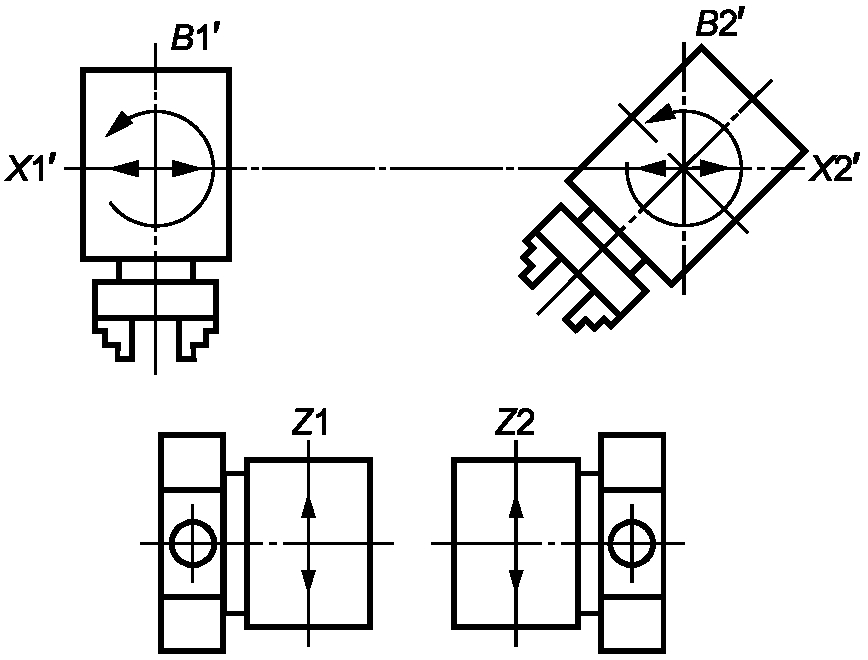 С револьверной головкой типа a) ![]() | С головкой типа d) ![]() С головкой, имеющей ось вращения B' ![]() | |||||||