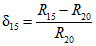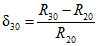 - относительные изменения сопротивления образца при изменении температуры соответственно от 20 °C до 15 °C, 20 °C до 25 °C и от 20 °C до 30 °C, вычисленные по формулам: