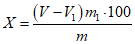 Массовую долю основного вещества в анализируемом реактиве X1, %, вычисляют по формуле