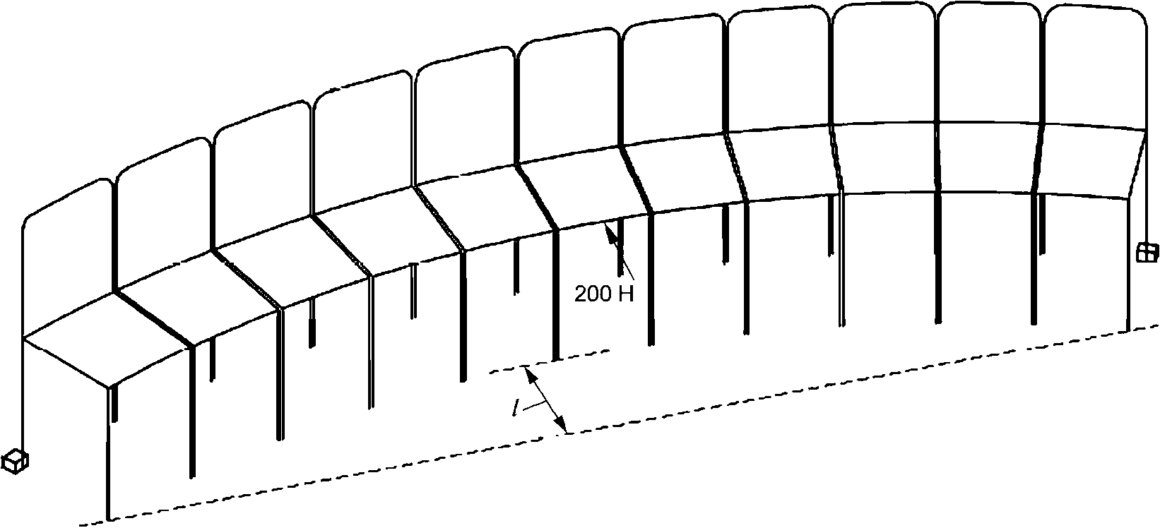 8.1 Испытание проводят на блоке, состоящем из одиннадцати соединенных друг с другом стульев (кресел). Крайние стулья (кресла) блока фиксируются с помощью стопорных приспособлений, чтобы избежать их смещения вперед или назад. Фиксация не должна препятствовать повороту крайних стульев (кресел) при изгибе ряда.