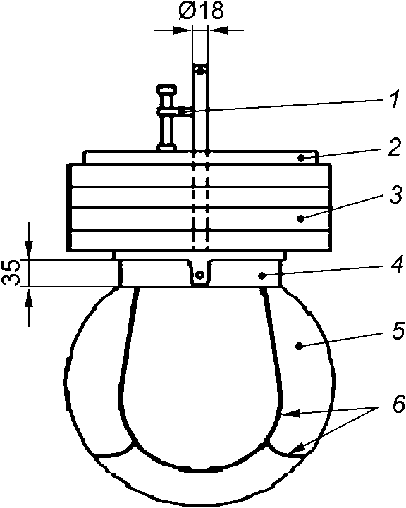 нагрузочных дисков; 4 - удерживающее кольцо для мяча;