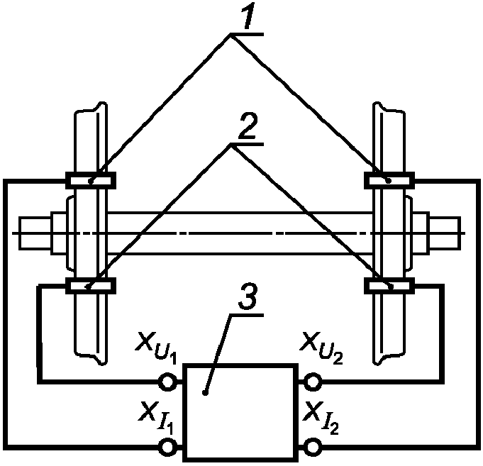 Омметр должен быть присоединен к бандажам (ободьям) колес колесной пары по четырехзажимной схеме. Рекомендуемая схема крепления электрического контакта на бандаже (ободе) колеса приведена на рисунке В.2.