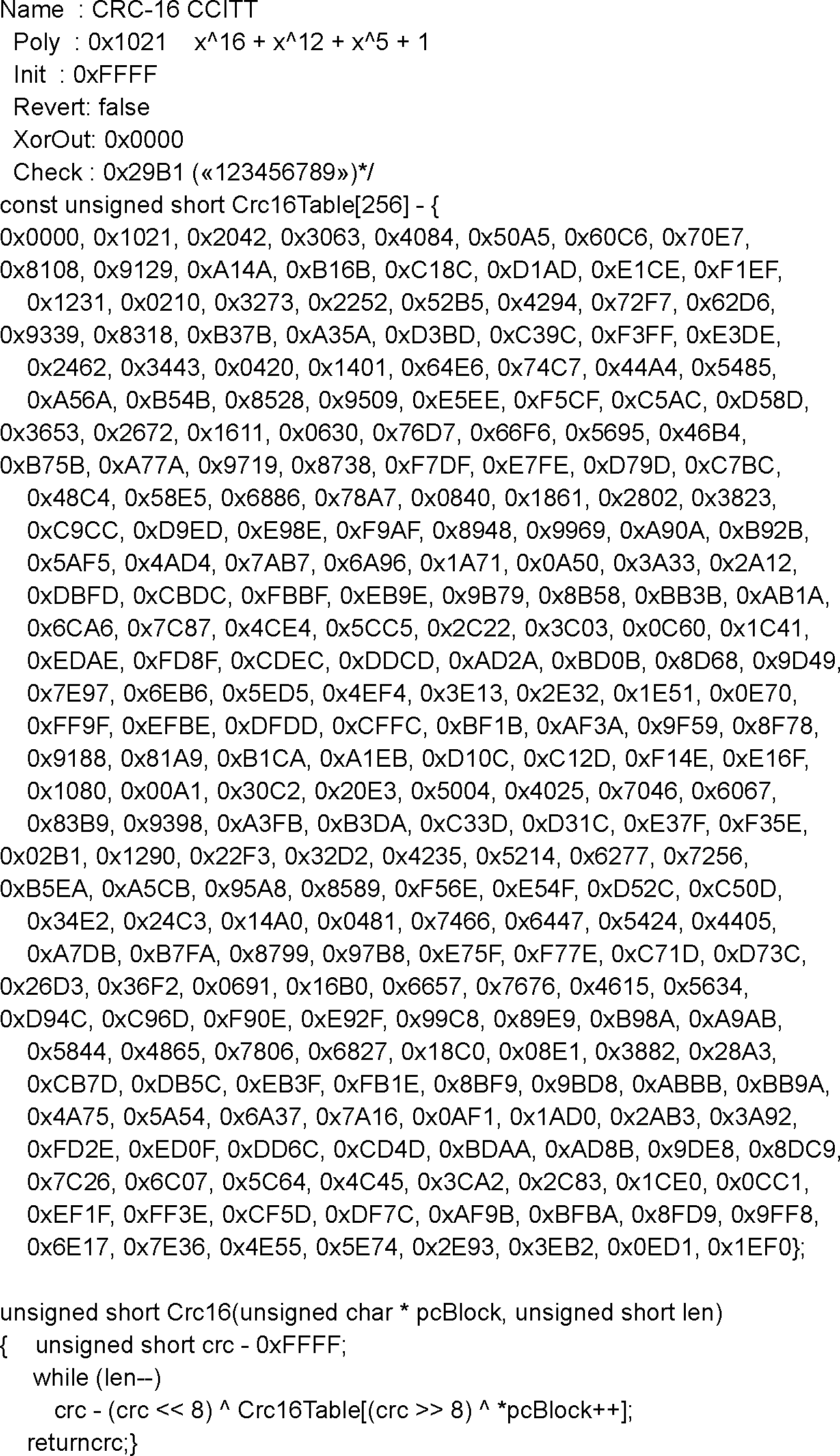 ПРИМЕР РЕАЛИЗАЦИИ АЛГОРИТМА РАСЧЕТА КОНТРОЛЬНОЙ СУММЫ CRC16
