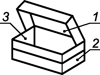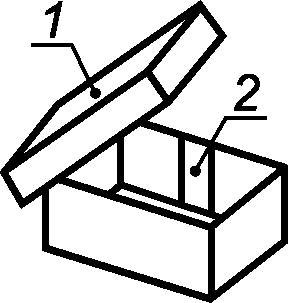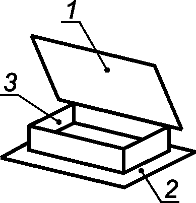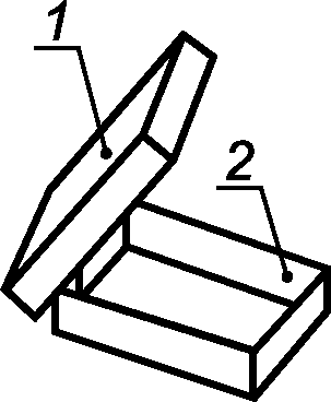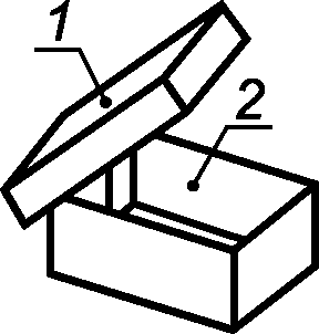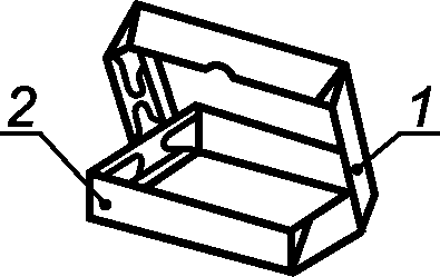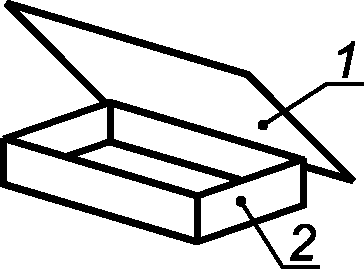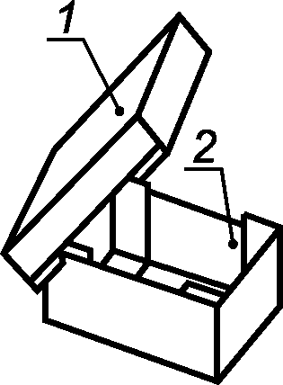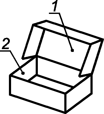 3.2 коробка с крышкой, соединенной "шарнирно" с корпусом: Коробка, закрываемая крышкой, соединенной с корпусом подвижно.