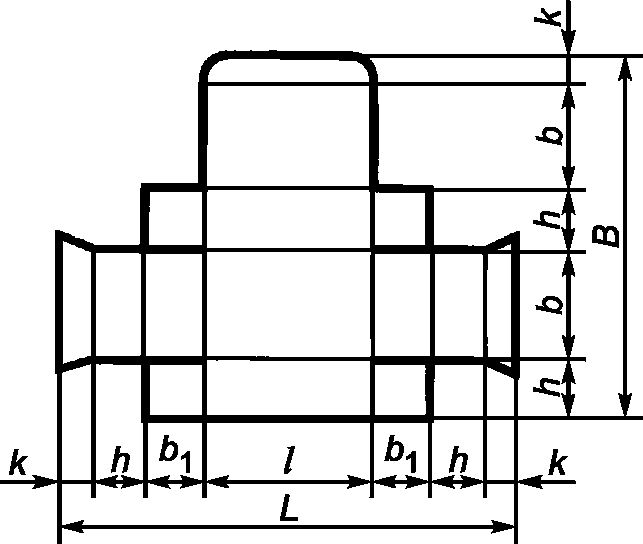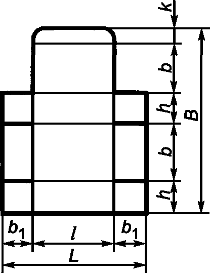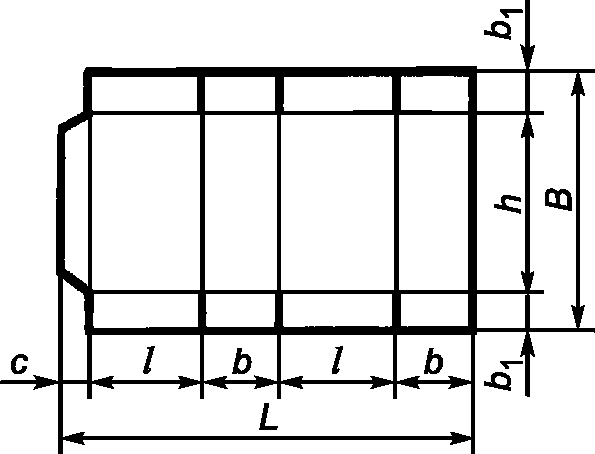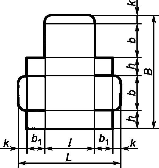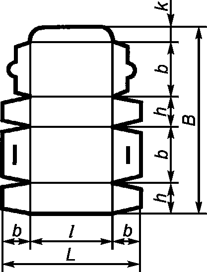 L - длина развертки корпуса; | b1 - ширина крышки; |