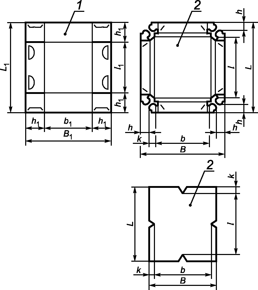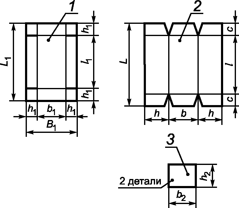Примечания 1 Условные обозначения деталей коробок на рисунках А.1 - А.23 настоящей таблицы: 1 - крышка; 2 - корпус; 3 - элемент корпуса. |