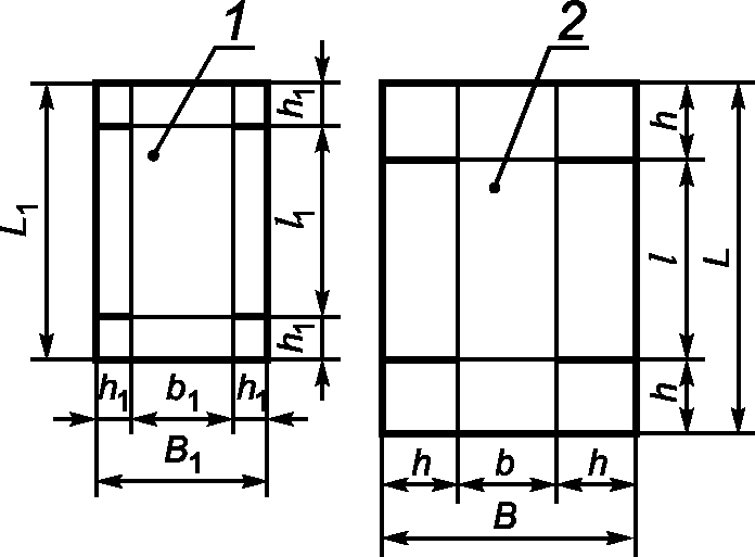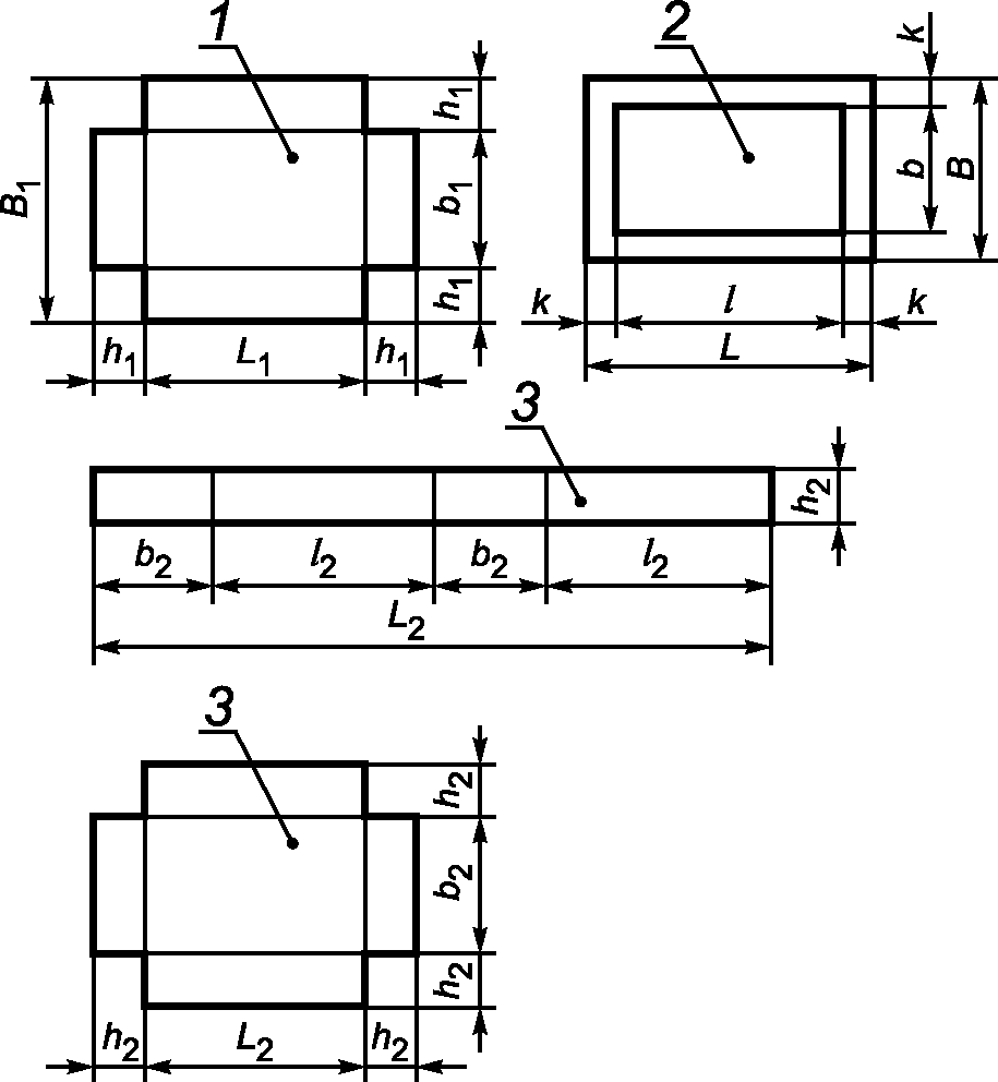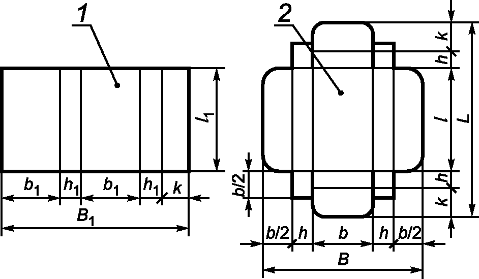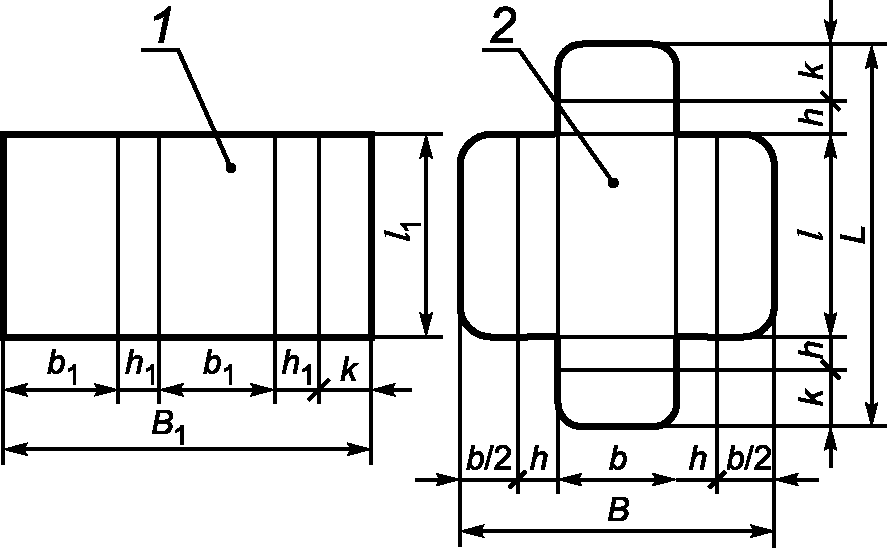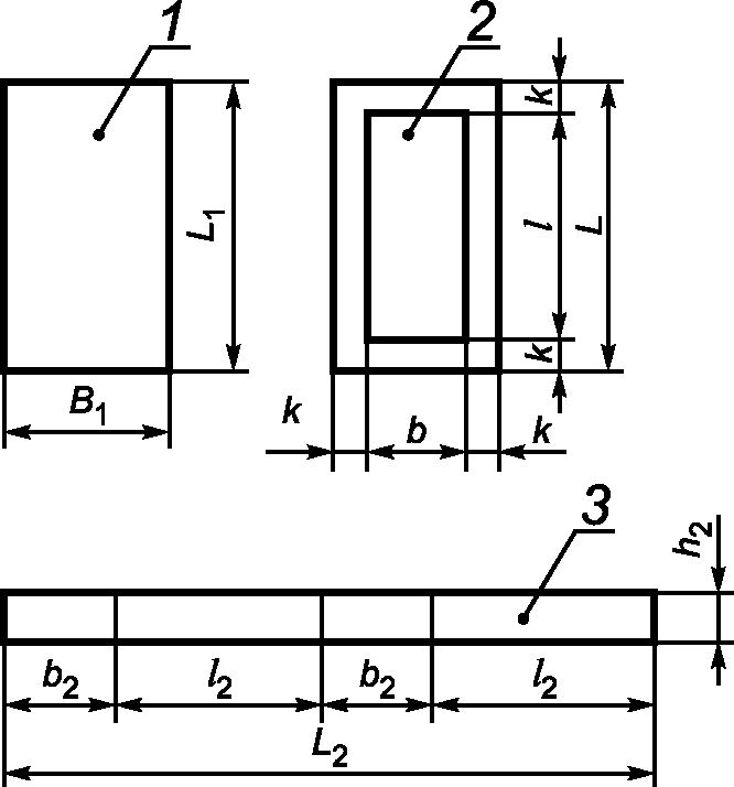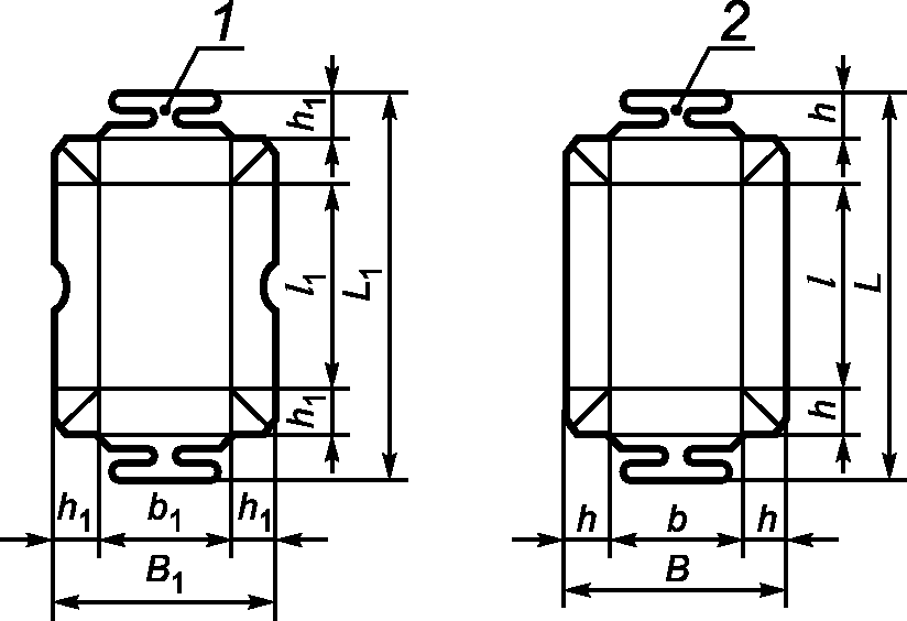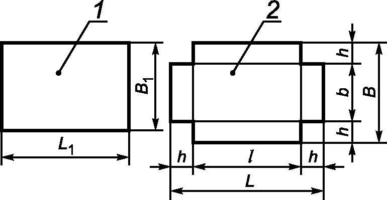 L1 - длина развертки крышки; | B2 - ширина элемента корпуса; |