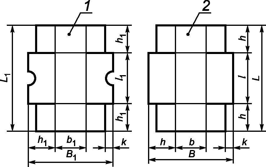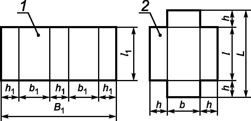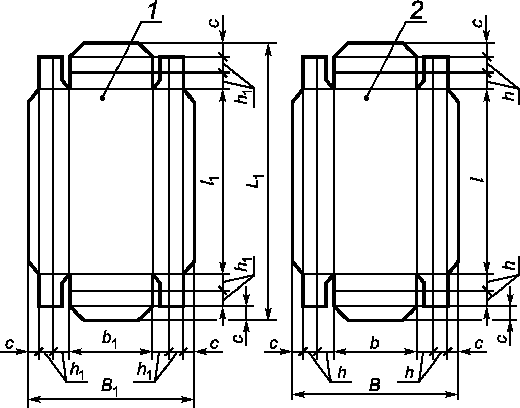 B - ширина развертки корпуса; | h1 - высота крышки; |