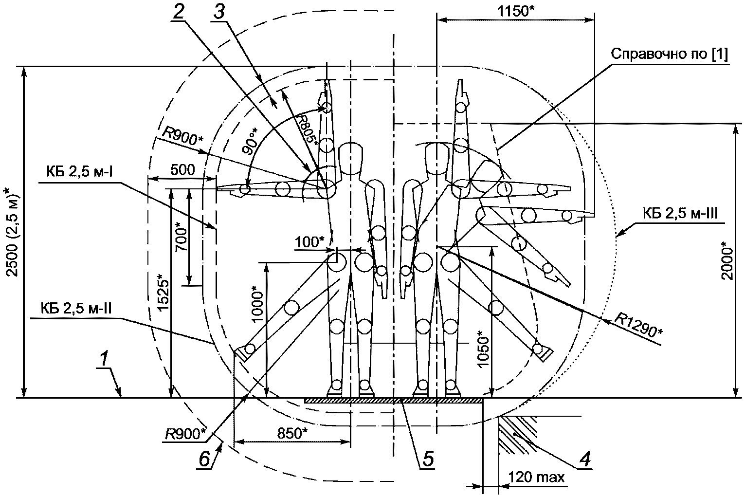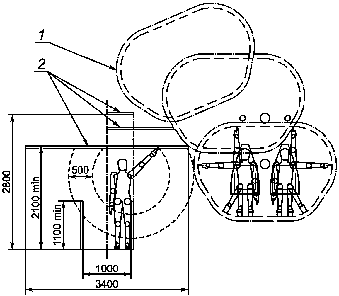 3.10 контур безопасности: Ограничение части пространства, внутри которого перемещается пассажир, обеспечивающее минимизацию или отсутствие риска получения травм в результате соприкосновения с подвижными и неподвижными элементами конструкций.