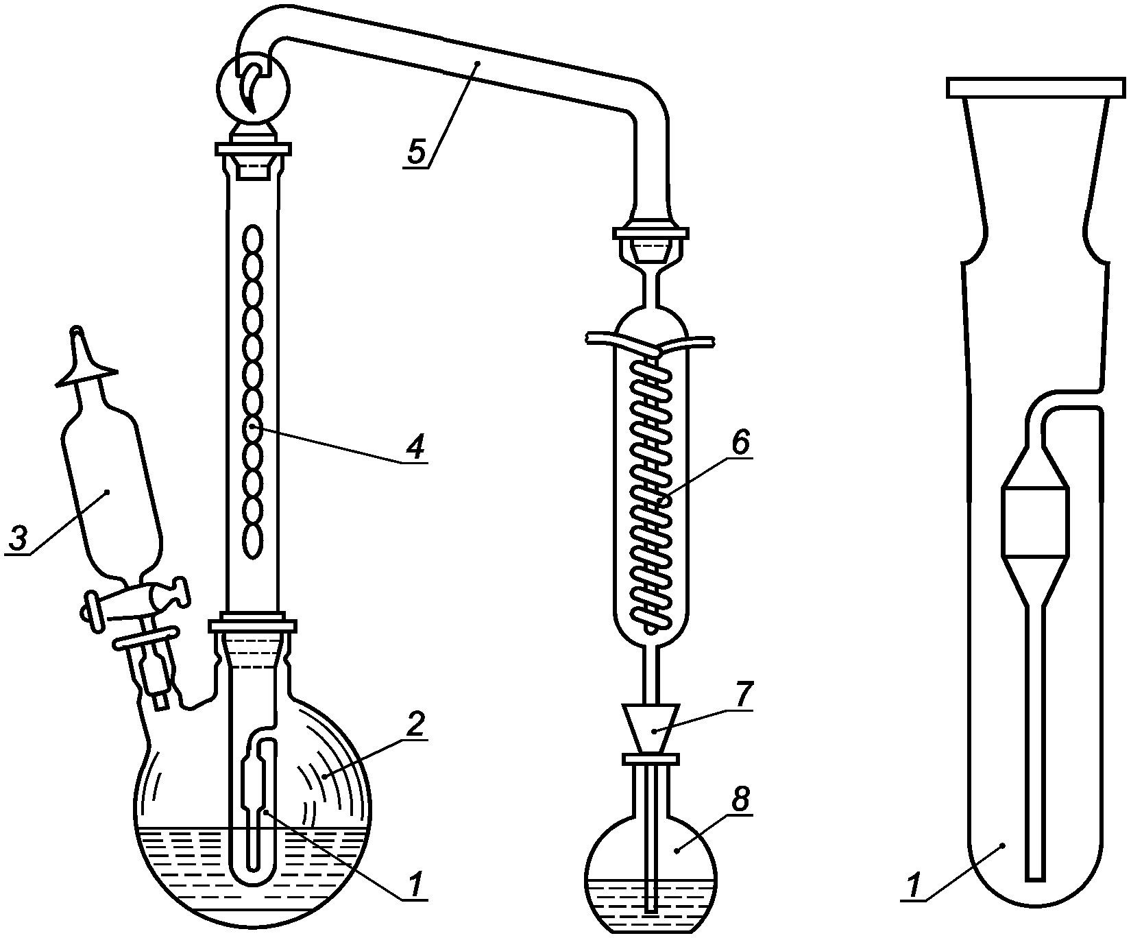 7 - стеклянная воронка; 8 - приемная колба