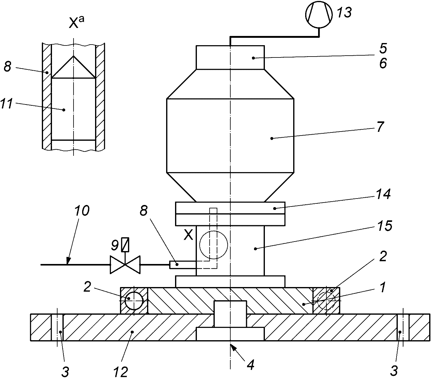 1 - короткоходовый цилиндр; 2 - фланец с трубой