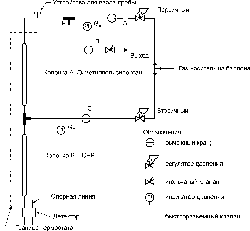 X1.2.1.3 Колонка 2 длиной 1,524 м (5 футов), внутренним диаметром 3,175 мм (1/8 дюйма), содержащая насадку TCEP, нанесенную на хромосорб (20% TCEP на хромосорбе PAW 80/100 меш).