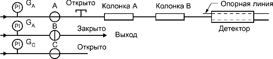 рисунке 2 - система с переключением клапанов (кранов). Можно использовать любую хроматографическую систему.