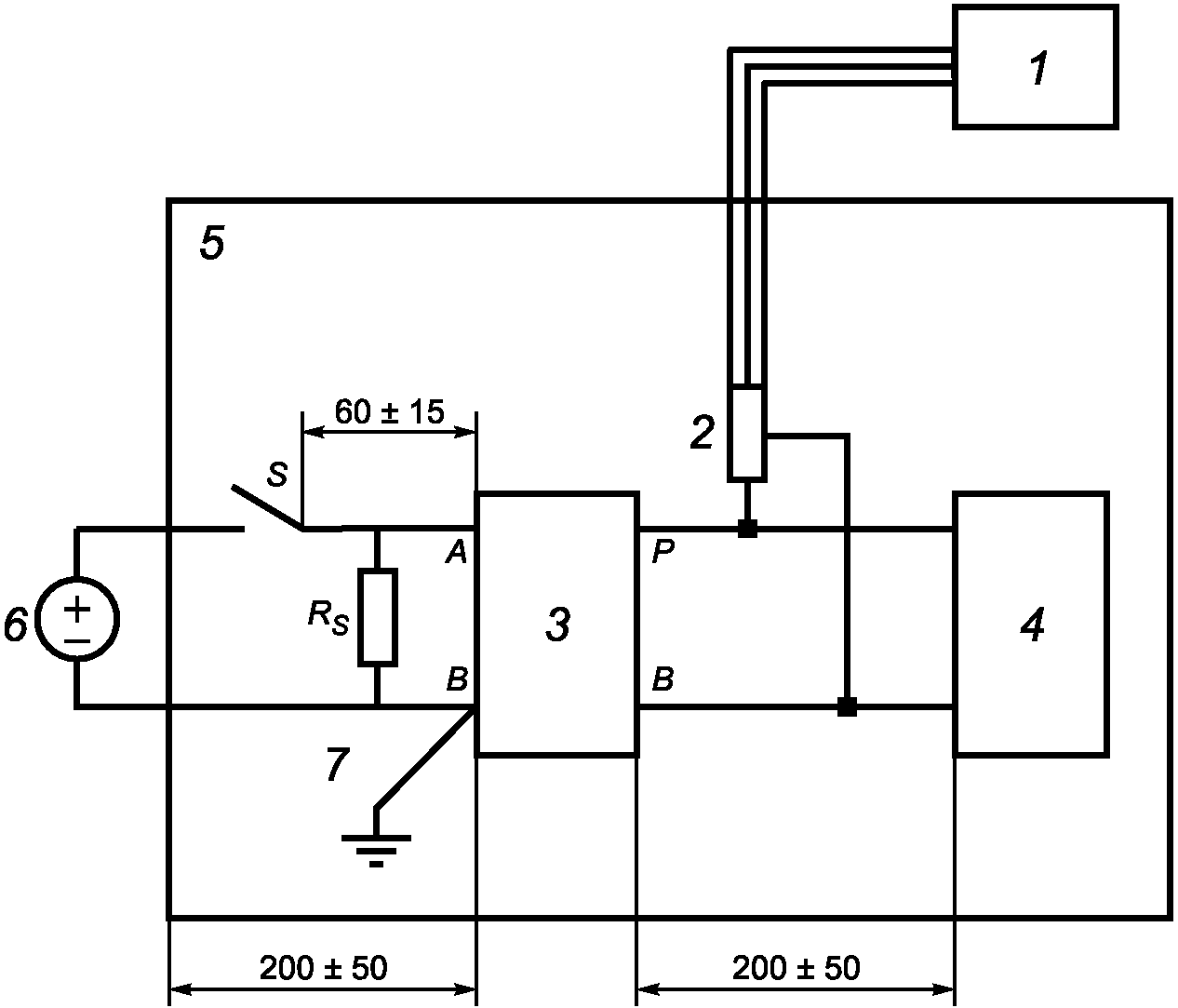 Для снижения посторонних емкостных связей с изделием рекомендуется использовать расстояние не менее 0,5 м между изделием и всеми другими кондуктивными структурами, такими, например, как стенки экранированной комнаты (за исключением основания под испытуемым изделием и емкостными клещами связи). Изделие подсоединяют к системе заземления в соответствии с требованиями технической документации на него. Дополнительное заземление не допускается.