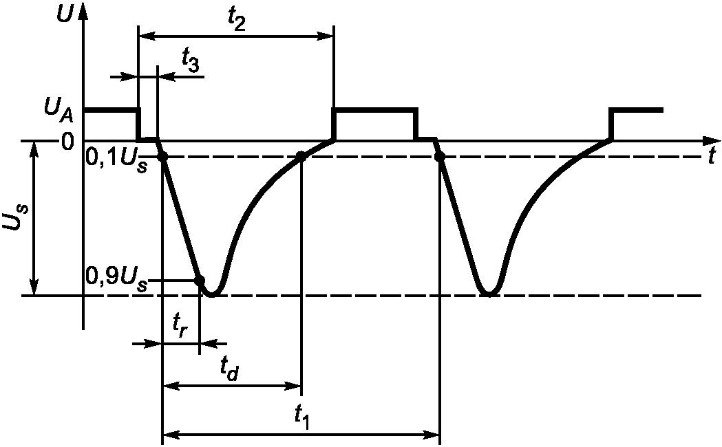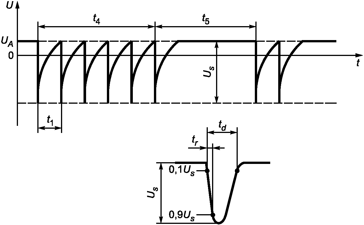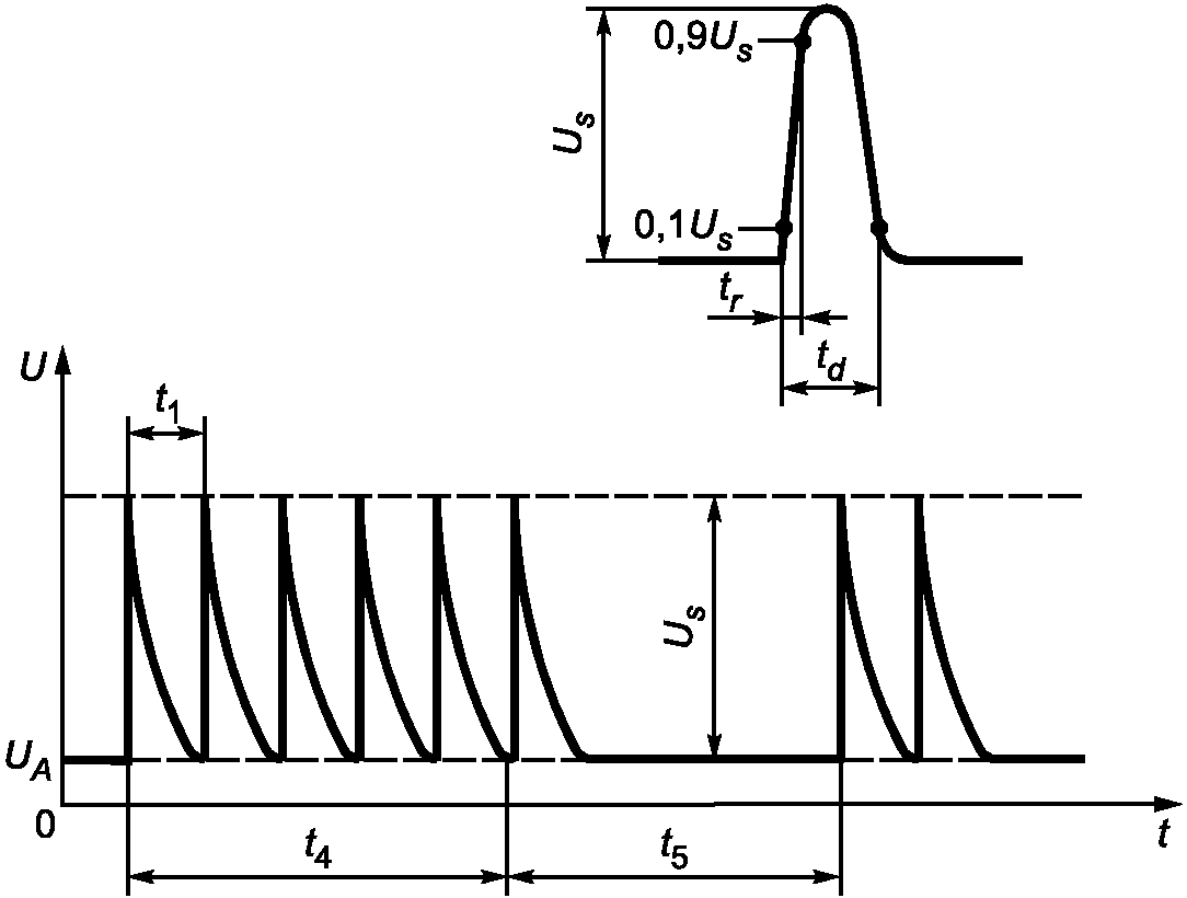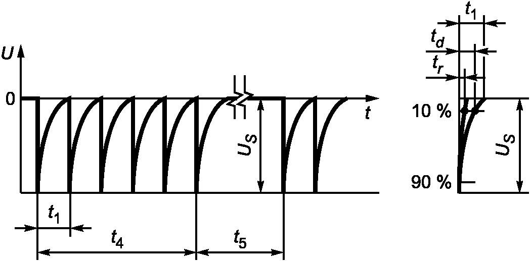 t1 = 0,5 - 5 с; td = 0,05 мс; tr = 1 мкс;