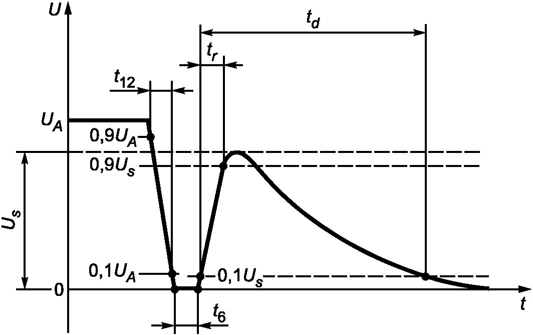 5.4.3.1 Форма и параметры испытательного импульса 1, имитирующего переходные процессы, вызываемые отключением индуктивных нагрузок, приведены на