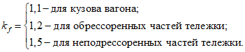 3.1.9 обрессоренные части тележки (вагона): Составные части несущей конструкции вагонной тележки, расположенные выше рессорного подвешивания или между ступенями рессорного подвешивания и кузова.