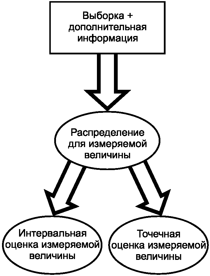 ДА.1.5 При теоретико-вероятностном подходе для описания результата измерения используется случайная переменная, математическое ожидание которой совпадает с истинным значением измеряемой величины или смещено относительно него на величину систематической погрешности. Это дает возможность в условиях ограниченного числа повторных наблюдений измеряемой величины строить для нее точечные и интервальные оценки.